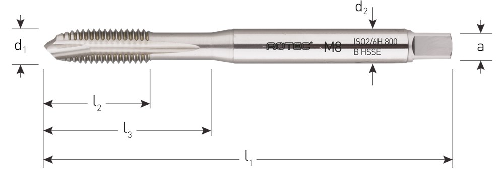 HSS-E machinetappen, DIN 371, metrisch links [M], 60°, ISO2 (6H), verdikte schacht, type B met schilaansnijding.