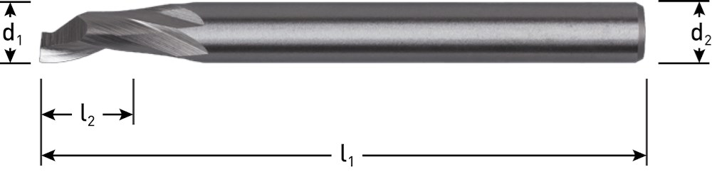 Eéntandsfrees met cilindrische schacht volgens DIN 1835-A. Grotere (scherpere) spaanhoek speciaal voor aluminium en kunststoffen.