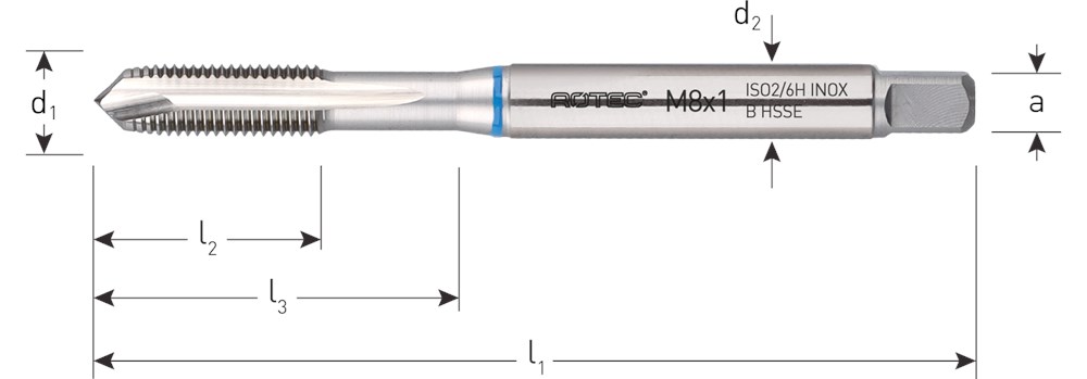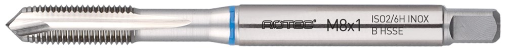 Tappen van doorlopende gaten in roestvaststaal. De INOX tappen zijn ook geschikt voor het tappen in staal <1.000 N/mm². Materiaalgroepen : 1.1 - 1.2 - 1.3 - 1.4 - 2.1 - 2.2 - 2.3