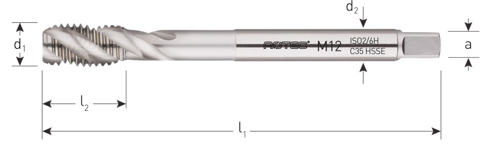 HSS-E machinetappen, DIN 376, metrisch [M], 60°, dunne schacht, type C, spiraalhoek 35°.