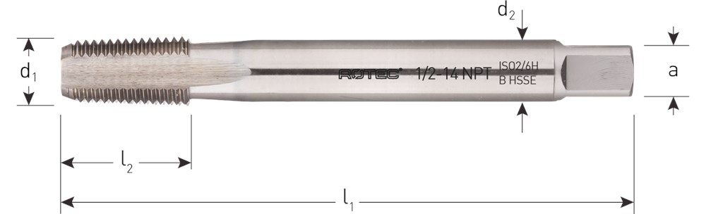 HSS-E machinetappen, NPT, 60°, coniciteit 1:16, type C met korte aansnijding.
