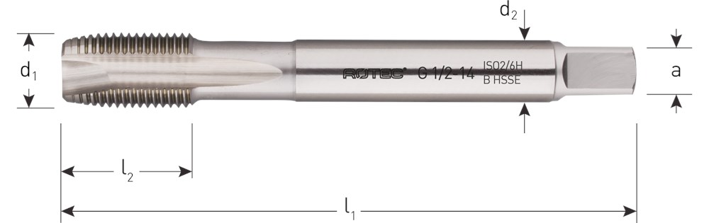 HSS-E machinetappen, DIN 5156, BSP (G, gasdraad), 55°, ISO2 (6H), type B met schilaansnijding.