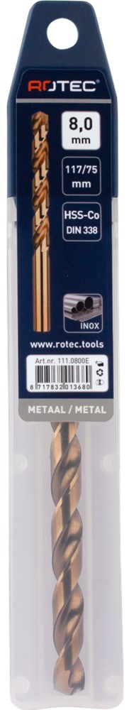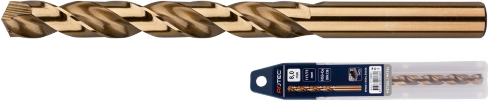 HSS-E Spiraalboor DIN 338, kort, type N, geslepen uitvoering, cobalt gelegeerd, goudkleurig, tophoek 135°, met splitpoint / kruisaanslijping (DIN 1412-C).