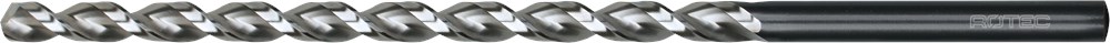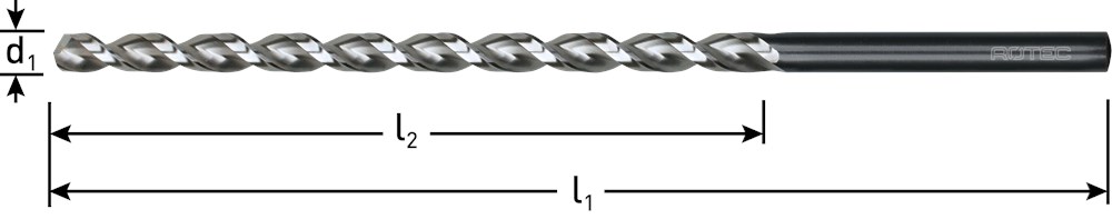 HSS-E Spiraalboor, DIN 1869, extra lang, type TLS1000, tophoek 130°, splitpoint / kruisaanslijping (DIN 1412-C), genitreerde geleidingsfasen. De TLS1000-spiraal zorgt voor een zeer goede spaanafvoer bij grotere boordieptes (>5xD in één keer zonder te lossen is mogelijk). Zeer stabiele boor met een excellente hittebestendigheid. Powered by Werkö.