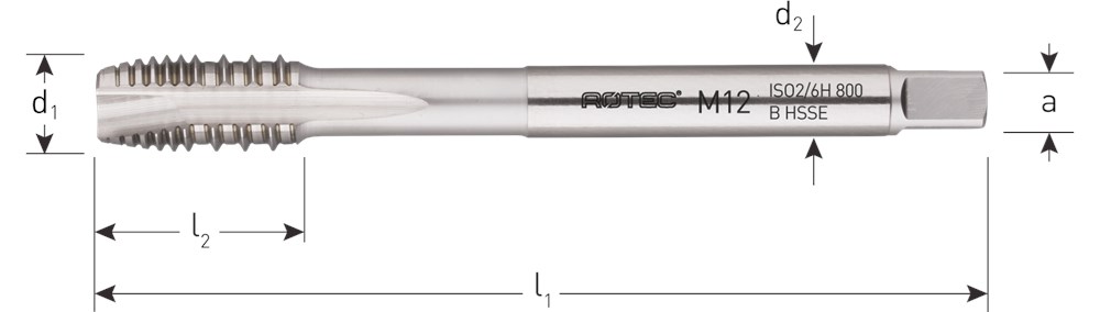 Tappen van doorlopende gaten in ongelegeerd staal (<800 N/mm²), aluminium, messing en brons. Materiaalgroepen : 1.1 t/m 1.3 - 4.1 t/m 4.10