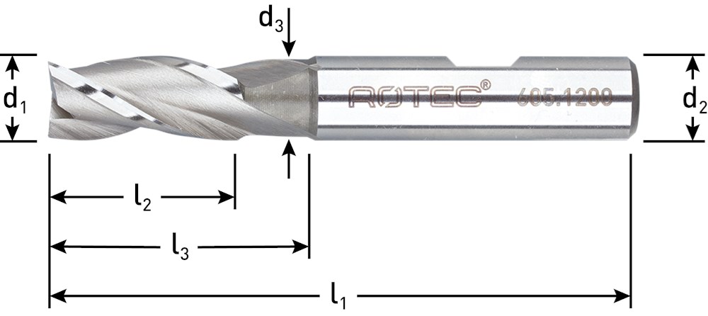 Kort model volgens DIN 844, type N, spiraalhoek 30°, cilindrische schacht met weldonvlak volgens DIN 1835-B.