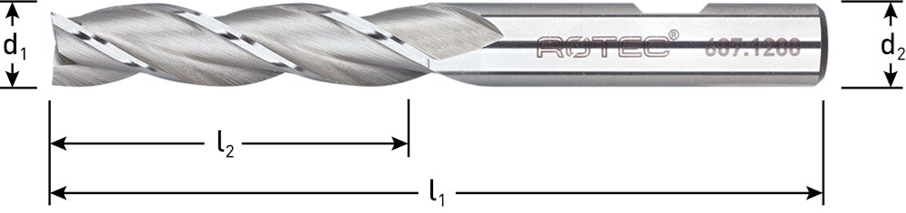 Lang model volgens DIN 844, type N, spiraalhoek 30°, cilindrische schacht met weldonvlak volgens DIN 1835-B.