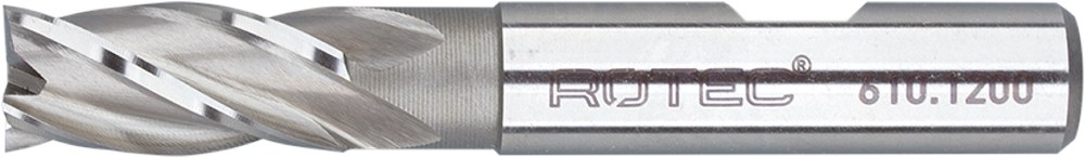 Kort model met 4 snijkanten volgens DIN 844, type N, spiraalhoek 30°, cilindrische schacht met weldonvlak volgens DIN 1835-B.