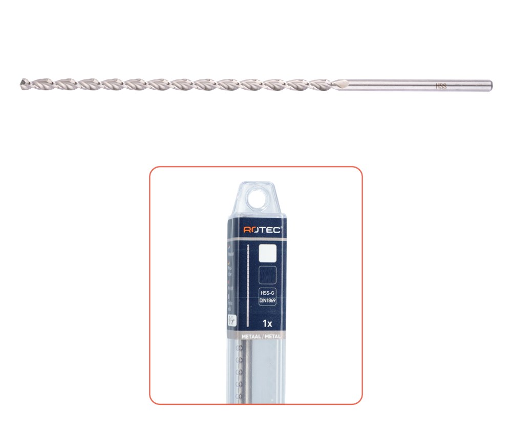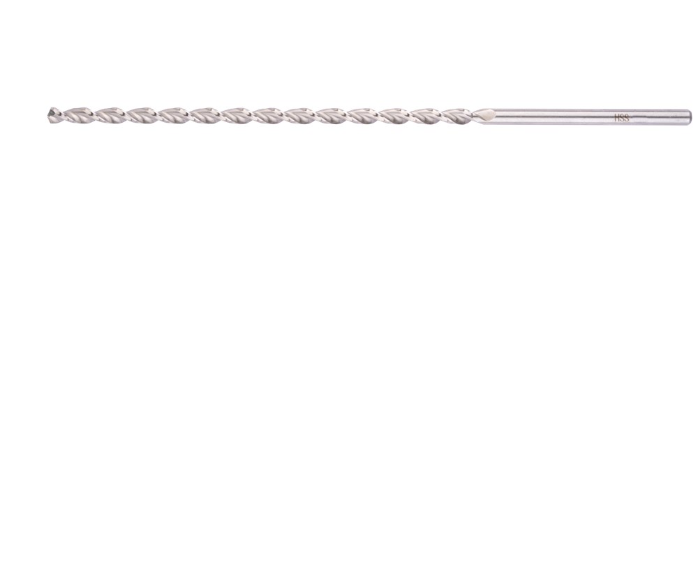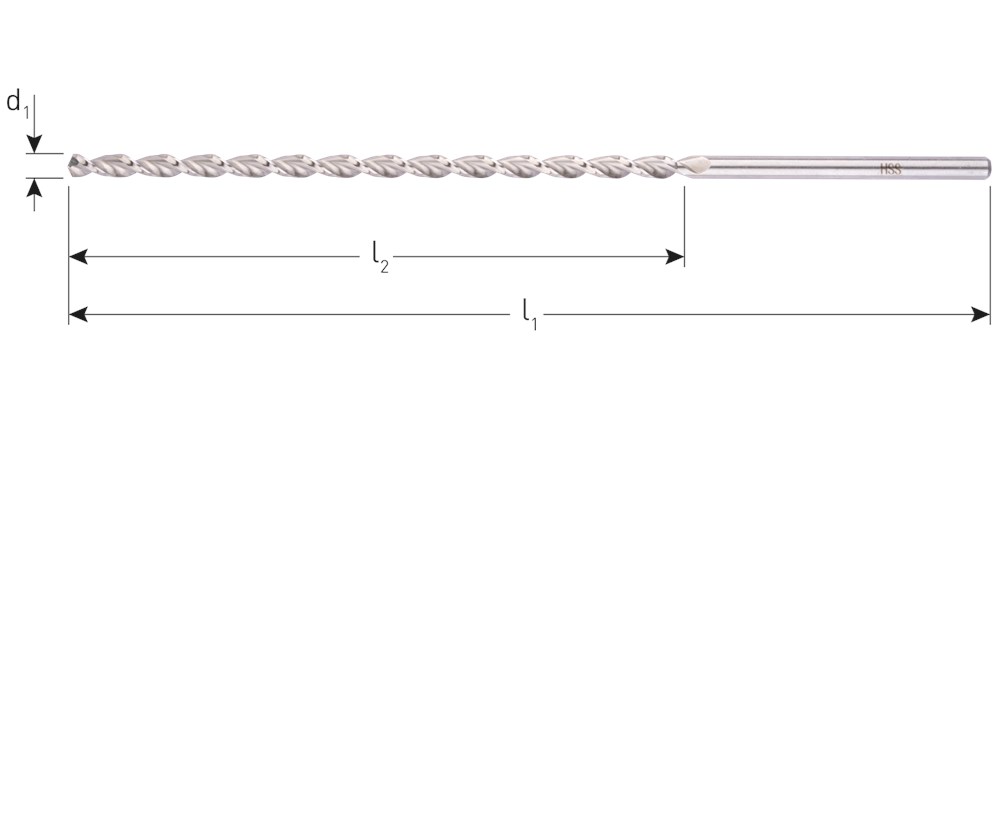 HSS-G Spiraalboor DIN 1869, extra lang, type TLS, blank, cilindrische schacht, tophoek 130°.