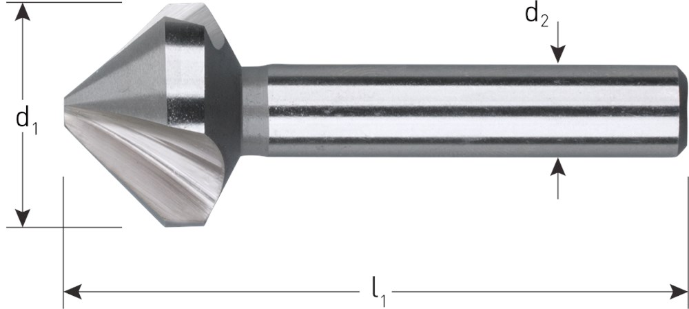 HSS-G verzinkfrees, DIN 335-C, cilindrische schacht, 90°, 3 snijkanten, CBN-geslepen.