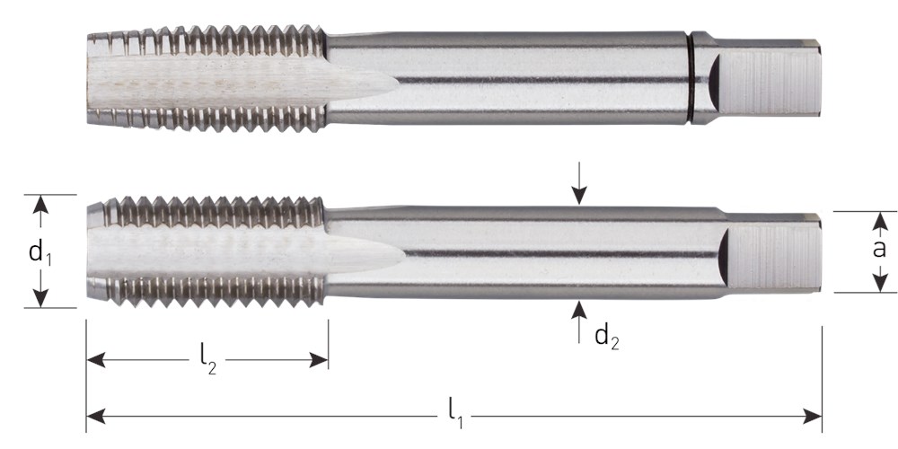 HSS handtappensets, DIN 2181, metrisch fijn, sets à 2 stuks.