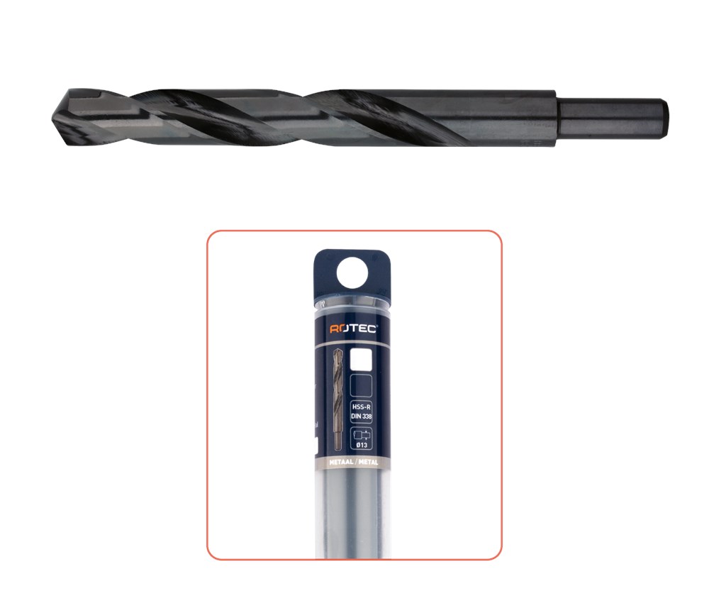 HSS-R Spiraalboor DIN 338, kort, type N, rolgewalste uitvoering, stoomontlaten, tophoek 118°, schacht afgedraaid naar ø13.