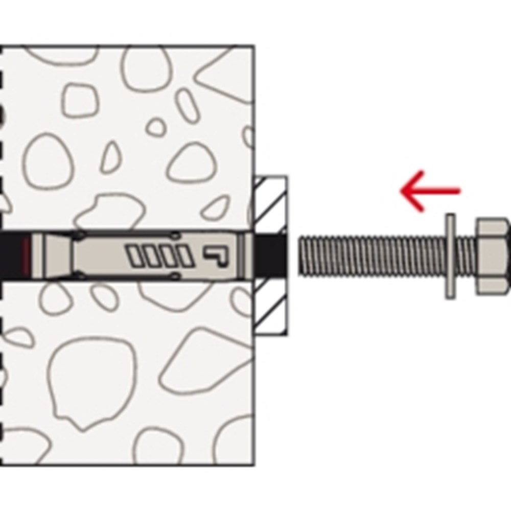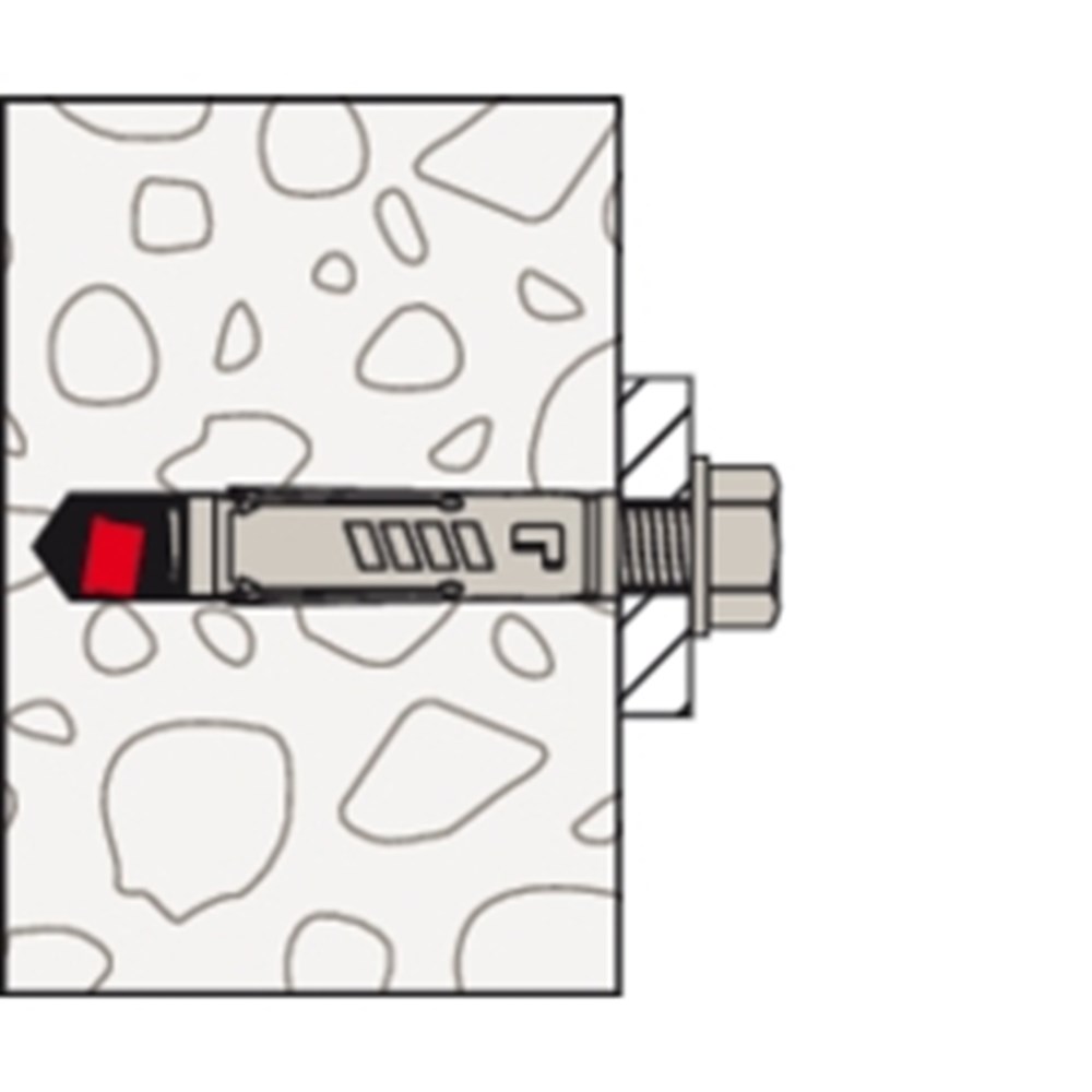 Contacteer onsHet fischer Hulsanker TA M-S is een inslaganker met binnendraad van gegalvaniseerd staal voor de voorsteekmontage. Bij de montage wordt de conus in de spreidhuls getrokken en spant deze tegen de wand van het boorgat. De kunststof dop beschermt de schroefdraad tegen vervuiling. Zo blijft deze altijd goed beweegbaar. Het hulsanker is zeer geschikt voor de bevestiging van valbeveiligingen, installaties en machines in ongescheurd beton.
