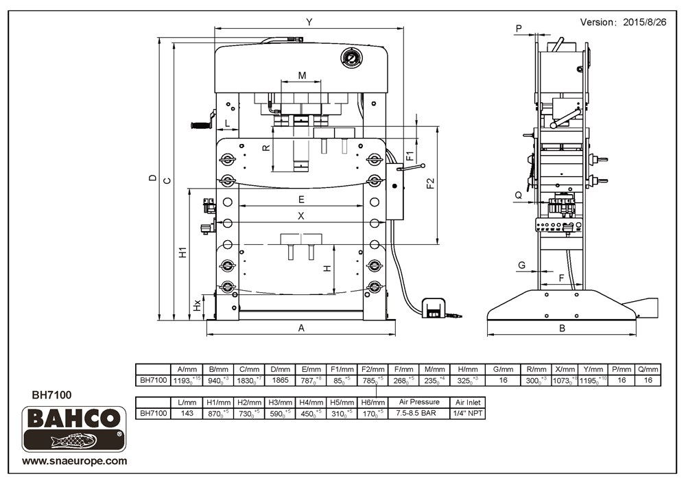 Contacteer onsBAHCO Artikelnummer: BH7100A HYDRAULISCHE PERS 100T