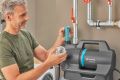 Contacteer onsDe krachtige en efficiënte Hydrofoorpomp 3800 Silent van GARDENA vormt een integraal onderdeel van de watertoevoer in huis en tuin. Hierdoor kan regenwater of putwater gebruikt worden om de tuin te bewateren, of in het huishouden, zoals bijvoorbeeld in de WC of de wasmachine. De Hydrofoorpomp gaat automatisch aan wanneer er water nodig is en gaat daarna vanzelf weer uit. Omdat hij kan tappen uit de grote opslagtank, werkt hij erg zacht en kostenefficiënt. De dompelpomp is krachtig, met een opvoerhoogte van 39 meter (3,9 bar) en een stroomsnelheid van 3800 liter per uur. Het lage stroomverbruik van slechts 600 watt is een bewijs van hoe ontzettend efficiënt deze in Duitsland ontworpen pomp is. De pomp heeft een stille werking, doordat de dempende kunststof behuizing het volume verlaagt naar een maximum van XX dB(A) geluidsdruk op 5 m afstand. De rubberen poten zorgen dat de pomp stevig staat en werkt met weinig trilling. De bodem kan ook op een verborgen manier in de vloer worden geschroefd. Binnen de 21-liter watertank in de pomp zit een sterk presterend membraan dat dat tank minstens 5 jaar onderhoudsvrij maakt. In deze periode hoeft er geen lucht te worden toegevoegd en hoeft het membraan niet te worden vervangen. Alle onderdelen van de Hydrofoorpomp staan voor duurzaamheid: de binnenste bekleding van de tank is gemaakt van een waterdicht, meerlaags materiaal, dat de behuizing beschermt tegen corrosie. De geïntegreerde koppeling tussen de pomp en de tank is gemaakt van roestvrij staal en is goed beschermd. Daarnaast zijn de drukindicator en drukschakelaar geïntegreerd in het ontwerp en zorgen deze voor compacte installatieafmetingen met maximale efficiëntie. Het keramisch afdichtingssysteem en het geïntegreerde filter dragen bij aan een lange levensduur. Het filter voorkomt dat vuildeeltjes in de energiezuinige pomp of verplaatsingsapparatuur komen. De praktische drukmeter toont je de actuele druk in de opslagtank op ieder moment, en de terugslagklep is al geïntegreerd, zodat de 3800 Silent meteen gebruikt kan worden. De aandrijfas is gemaakt van roestvrij staal. Daarnaast beschermt de thermische veiligheidsschakelaar de motor tegen overbelasting. Dankzij de grote vulopening en het ontwateringsventiel is de pomp makkelijk te vullen en tegen vorst te beschermen. Na een online registratie, geeft GARDENA 5 jaar garantie op de Hydrofoorpomp 3800 Silent.