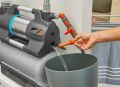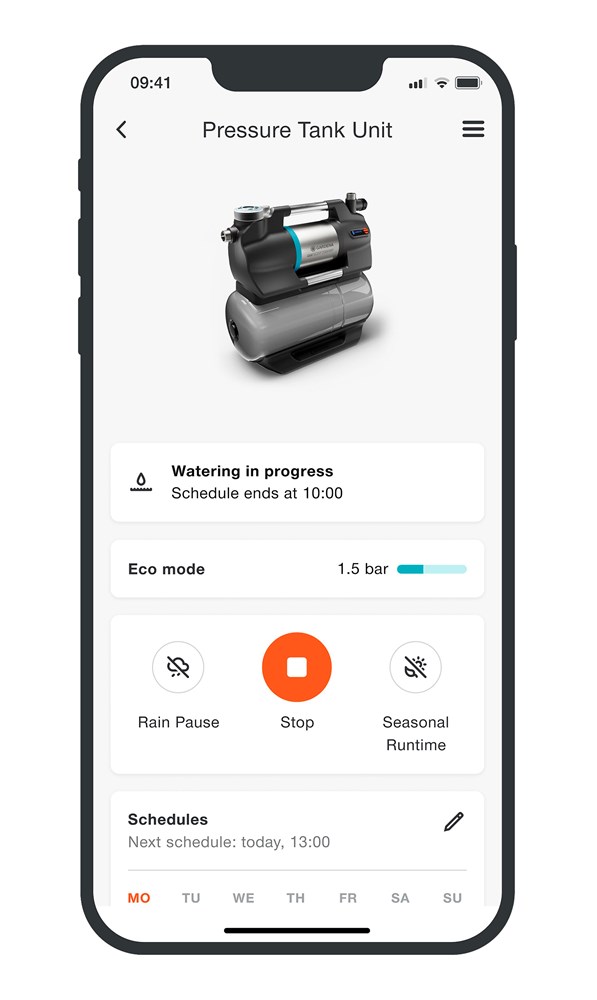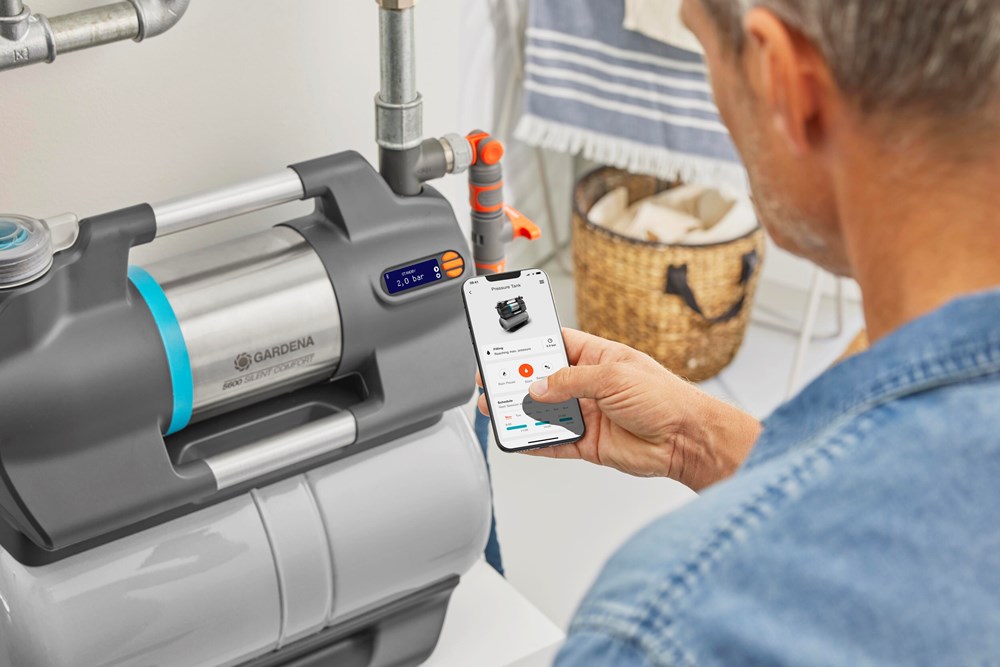 Contacteer onsDe GARDENA Hydrofoorpomp 6300 SilentComfort is erg krachtig en energiezuinig. Hiermee kan je goedkoop regenwater of putwater gebruiken om de tuin te bewateren, of om bijvoorbeeld de WC mee door te spoelen. Het water van putten, reservoirs of regentonnen wordt gepompt naar het punt van gebruik gepompt, met een opvoerhoogte van 49 meter (4,9 bar). De pomp kan water oppompen vanaf een diepte tot 8 meter. De stroomsnelheid is 6300 liter per uur met een laag stroomverbruik van 1050 watt. De Hydrofoorpomp gaat automatisch aan wanneer er water nodig is en gaat daarna vanzelf weer uit. Door gebruik te maken van de grote opslagtank van 25 liter werkt hij erg stil en kostenefficiënt. De Hydrofoorpomp 6300 SilentComfort is ontwikkeld in Duitsland en is met slechts XX dB(A) geluidsdruk op 5 m afstand uitzonderlijk stil. De innovatieve, watergekoelde, meerfasige technologie maakt dit mogelijk. Dankzij deze technologie is er geen ventilator nodig omdat de overtollige warmte via het water wordt afgevoerd. Dit zorgt voor maximale efficiëntie en minimaal geluid. Alle functies van de dompelpomp, zoals starten of stoppen, kan je van tot wel 10 meter afstand bedienen via het scherm of een smartphone of tablet, dankzij Bluetooth. Er kan bijvoorbeeld een bewateringsschema worden aangemaakt voor de vakantieperiode, of een los verkrijgbare Bodemvochtigheidssensor (art. nr. 1867-20) worden bediend voor een optimale wateraanvoer en zuinige bewatering. Het is ook mogelijk om een timer te gebruiken, de toevoerdruk te bewaken of de in- en uitschakeldruk aan te passen op je persoonlijke behoeften. Naast het aanmaken van een bewateringsschema kan je deze functies ook bedienen via de knoppen op het LCD-scherm op de Hydrofoorpomp. Er is een membraan van hoge kwaliteit in de watertank van 25 liter geplaatst. Hierdoor hoeft minstens 5 jaar de lucht niet aangevuld te worden en het membraan niet vervangen te worden. De behuizing is beschermd tegen corrosie doordat de binnenste bekleding van de tank bestaat uit een waterdichte, meerlaagse voering. De geïntegreerde koppeling tussen de pomp en de tank is gemaakt van roestvrij staal. Dit maakt hem bijzonder duurzaam, goed beschermd en door zijn compactheid makkelijk te plaatsen met maximale efficiëntie. Het keramisch verzegelingssysteem met dubbele afdichting, de droogloop- en oververhittingsbescherming (water en motor), de optionele druppelwaterdetectie en het geïntegreerd filter zorgen voor een lange levensduur. Het filter voorkomt dat vuildeeltjes in de energiezuinige pomp of verplaatsingsapparatuur komen. Op verzoek herinnert de pomp je eraan om het filter te reinigen en biedt hij stapsgewijze instructies in 28 selecteerbare talen voor een eerste installatie. Daarnaast wordt de druk weergegeven in de app op het digitaal display op de behuizing. Dankzij de geïntegreerde terugslagklep kan de Hydrofoorpomp 6300 SilentComfort meteen gebruikt worden. De handige en optioneel selecteerbare Power-Boost-Functie wordt gebruikt wanneer de elektrische pomp nodig is voor bijvoorbeeld tuinbewatering. De functie detecteert automatisch wanneer er meer vraag is naar water en deactiveert de uitschakeldruk van de tank. Zo wordt de maximale druk van de Hydrofoorpomp gebruikt. Het probleem van drukschommelingen die vaak optreden bij Hydrofoorpompen ligt in het verleden en de topprestaties die je normaal gesproken meer bij besproeiingspompen zou verwachten wordt behaald. Zodra de bewatering klaas is, schakelt de pomp automatisch terug naar de energiezuinige modus. De duurzame Hydrofoorpomp wordt gekenmerkt door materialen van hoge kwaliteit, zoals roestvrij staal voor de aandrijfas, de aansluitingen en ook de motor en waterbehuizing. Een van de twee uitlaten kan 180° gedraaid worden. Dankzij de grote vulopening en het ontwateringsventiel is de Hydrofoorpomp 6300 SilentComfort makkelijk te vullen en tegen vorst te beschermen. Na online registratie geeft GARDENA 5 jaar garantie op dit kwaliteitsproduct.