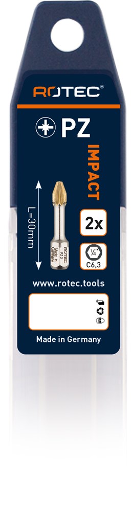 IMPACT Schroefbit 'DIAMOND' met C6.3-bitaansluiting, profiel PZ (Pozidriv).