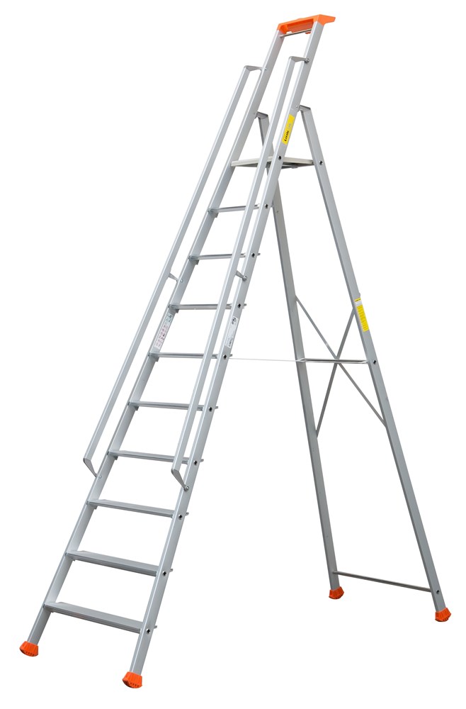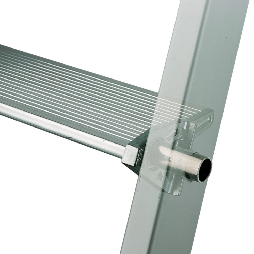 Contacteer onsProfessionele industrietrap met groot bordes. De geanodiseerde kokerprofielen geven niet af (schone handen) en maken een robuuste, lichtgewicht constructie die makkelijk mee te nemen is. De 9 cm diepe treden zijn door het kokerprofiel gefelst. Het scharniergewricht is gemonteerd in een polyamide behuizing in het achterraam voor intensief gebruik. Voorzien van (50 mm) anti-slip voeten en handige materiaalbak (met afsluitbaar vak voor kleine onderdelen). Vanaf 10 treden standaard met aangrijpleuningen.