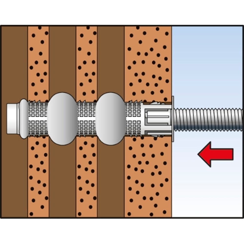 Contacteer onsDe fischer Injectiehuls FIS set 18 x 130/200 M12/200 is een systeemcomponent bij het gebruik van fischer Injectiemortel in geperforeerd metselwerk in de doorsteekmontage. Daarbij wordt de injectiehuls met behulp van de schaalverdeling en de verschuifbare rand op de dikte van het montagestuk aangepast en afgesneden. De injectiemortel wordt vanaf de bodem van de injectiehuls opgevuld. Bij het plaatsen van de ankerstang wordt de mortel door de roosterstructuur gedrukt en verbindt zich passend met de geperforeerde baksteen. Daardoor wordt de belasting overgedragen aan het bouwmateriaal. Met behulp van de injectiehuls kunnen ook niet-dragende lagen worden overbrugd. De Injectiehuls FIS H K is geschikt voor het bevestigen van houtconstructies, carports of zonweringen.