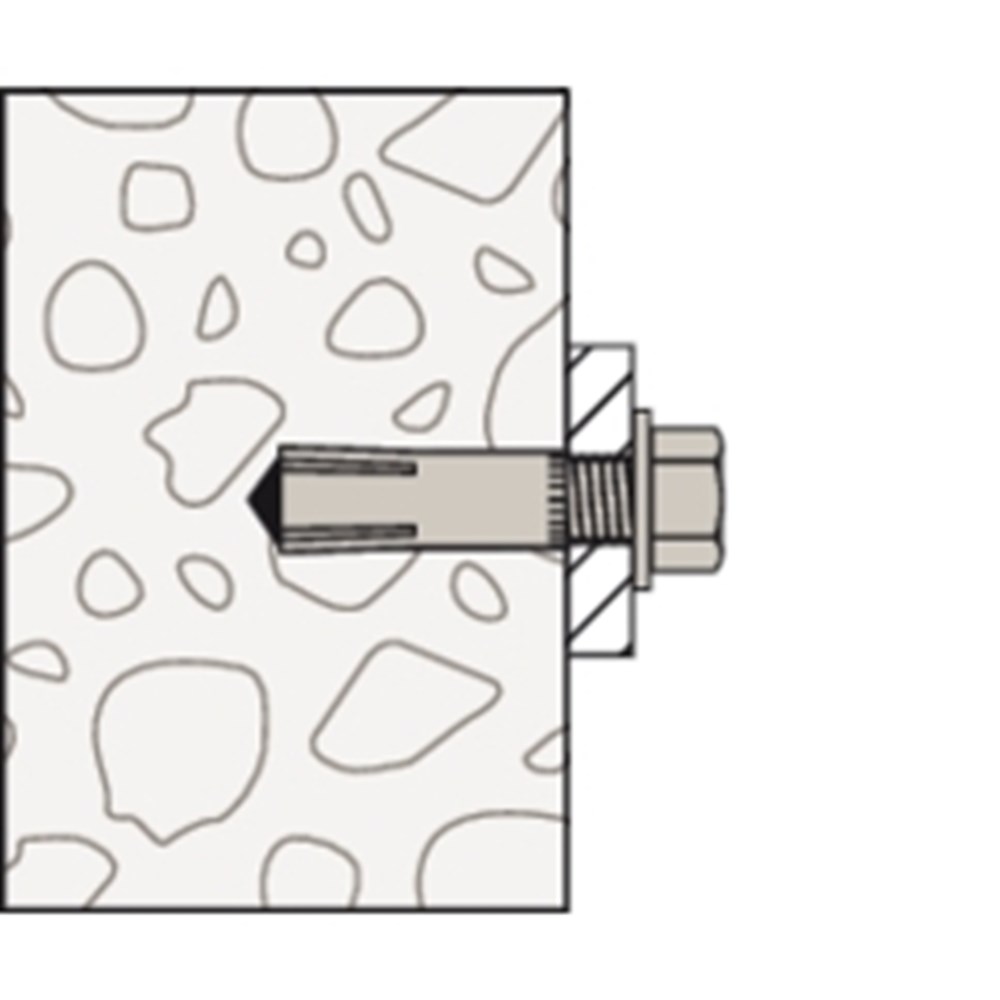 Contacteer onsHet fischer Inslaganker EA N is een inslaganker met binnenwerkse schroefdraad van gegalvaniseerd en roestvast staal. Het inslaganker is ideaal voor de meervoudige bevestiging van niet-dragende systemen, waarvoor geen goedgekeurde verankering noodzakelijk is. De montage van het inslaganker met binnenwerkse schroefdraad is dankzij de geringe inschroefdiepte, de snelle slagmontage, en het gecontroleerde inschroeven uitermate rendabel. De EA N wordt met de hamer en lijnend met het verankeringsoppervlak aangebracht. Met het montagehulpstuk EA-ST wordt de huls door het naar binnen drijven van de inwendige stift open gespreid en zo tegen de wand van het boorgat gespannen. Voor een correcte spreiding hoeft geen koppel op de schroef uitgeoefend te worden.