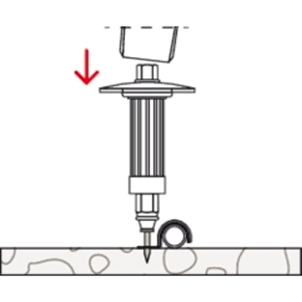 Contacteer onsMet de fischer Inslagnagel ED worden de fischer Metalen zadels en fischer Geperforeerde band zonder voorboren ingeslagen. Voor de montage wordt de fischer Inslagnagel in het Montagehulpstuk SZE geplaatst. De houder houdt de nagel tijdens het plaatsen vast. Met slechts enkele tikken met de hamer zit de inslagnagel stevig in het beton.