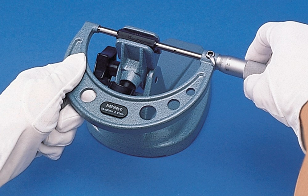 Een Mitutoyo precisielengtestandaard voor het nauwkeurig instellen van een schroefmaat aan het begin of einde van zijn meetbereik. Kan ook worden gebruikt voor het instellen van andere soorten meetinstrumenten met continue schaal op een bepaald punt binnen het meetbereik wanneer u de nauwkeurigheid van dat instrument in dat bereik wilt controleren
