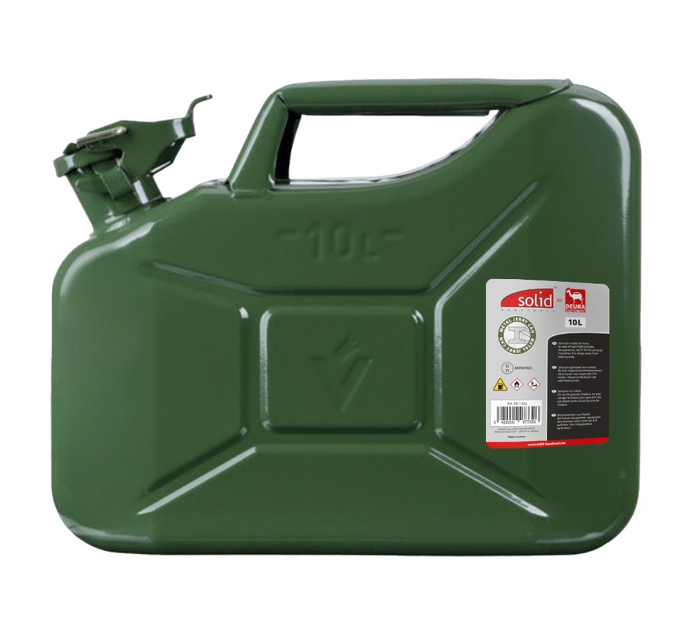 Contacteer onsSOLID Artikelnummer: PPDR 11232 JERRYCAN 10L - METAAL - MET VEILIGHEIDSSLOT. UN-GEKEURD VOOR BENZINE (