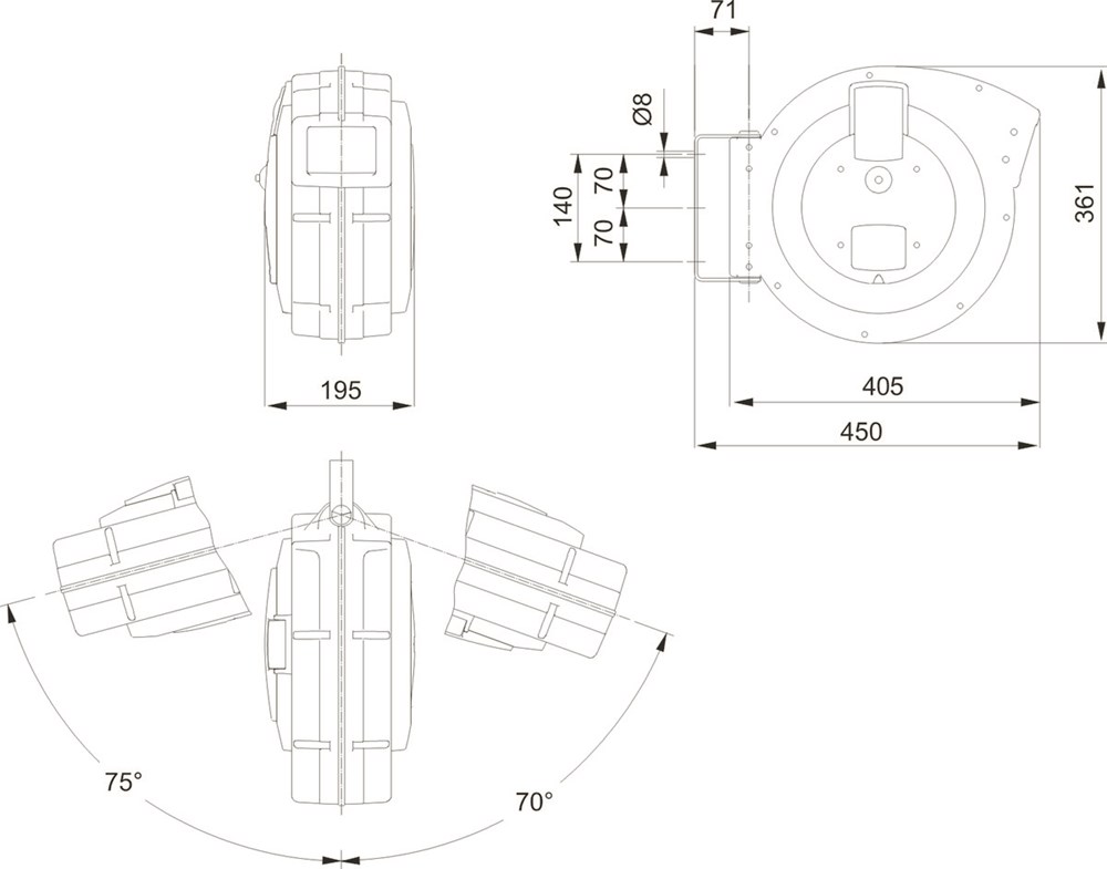 Contacteer onsBAHCO Artikelnummer: BLCR400E KABELHASPEL 15M