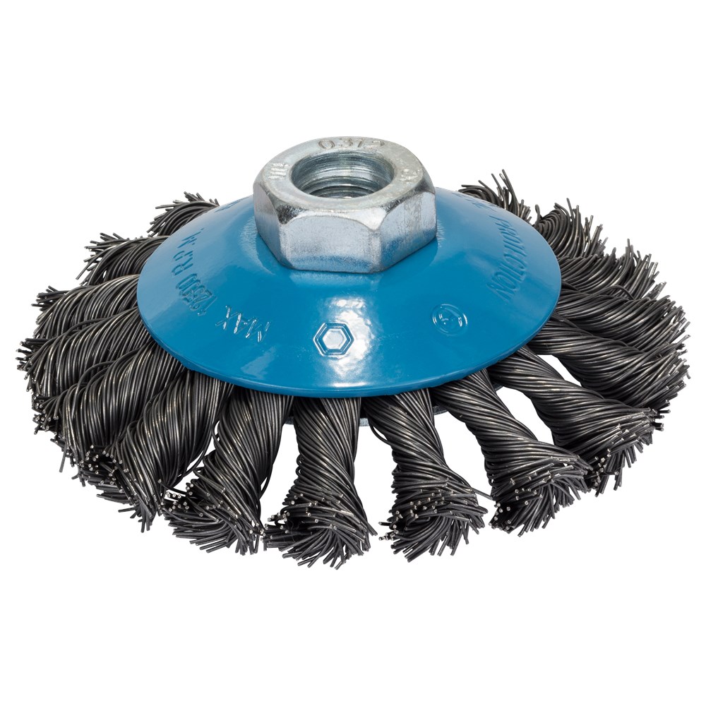 De Heavy for Metal schuine borstel biedt een extragrove afwerking van het oppervlak. De conische schuine borstel is voorzien van getordeerde draad voor zware reinigingswerkzaamheden op moeilijk bereikbare plekken. Geschikt voor het reinigen van kleinere stalen oppervlakken en langs randen of in groeven bij hoge omtreksnelheden. Ideaal voor metaal en ook geschikt voor het verwijderen van zware roest, lak, slakvorming, bramen en kalk en het reinigen van lasnaden.