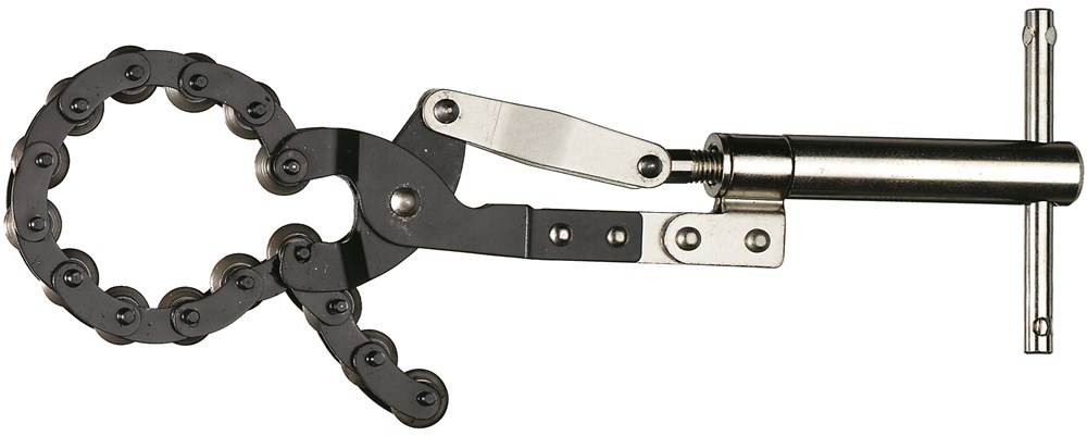 Contacteer onsTraploos, met draaigreep, ook voor edelstaalpijp tot 1,8 mm wanddikte geschikt, kettinglengte 270 mm.