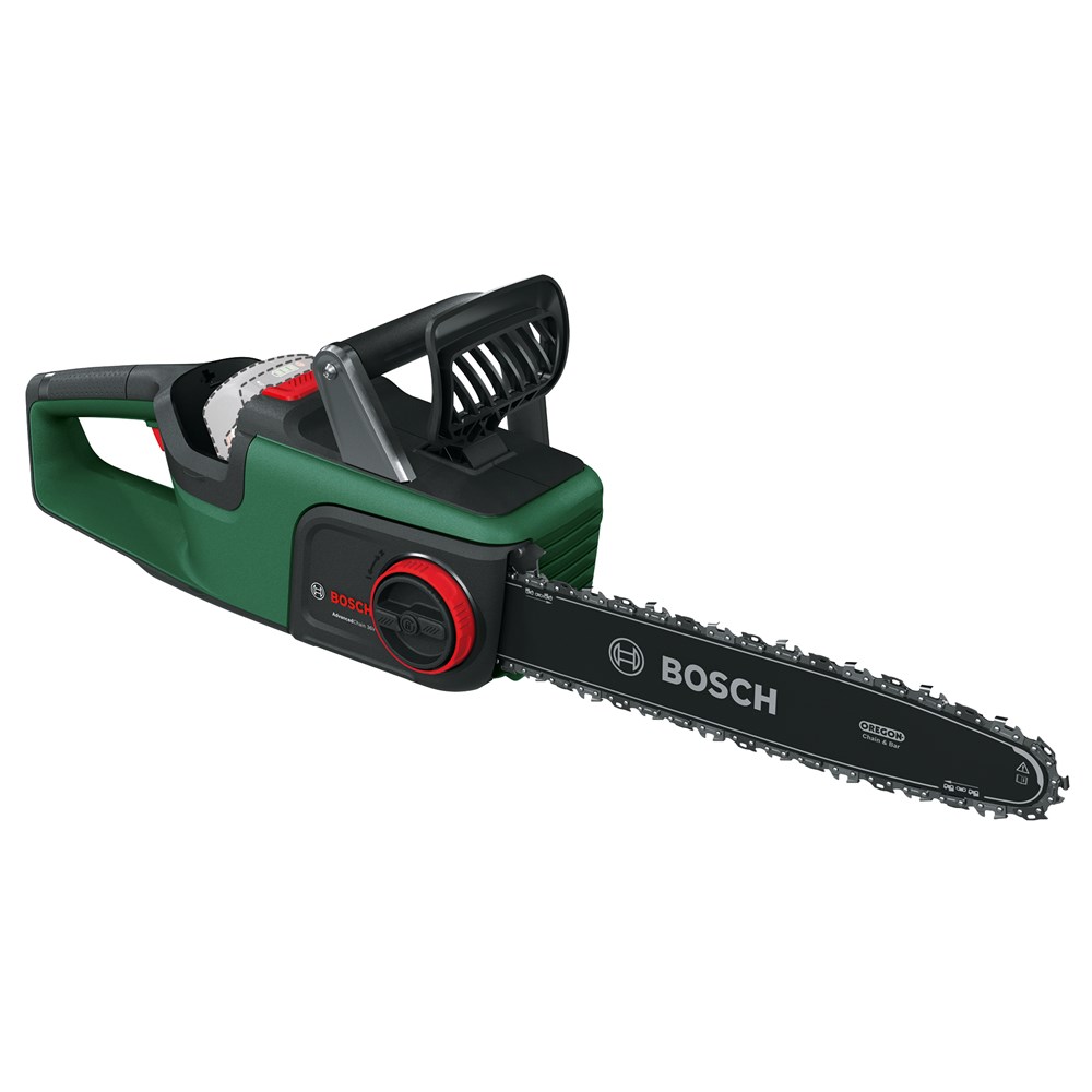 Krachtig en snoerloos hout zagen met nul emissie Blijf tuinonderhoud de baas en pak grote takken en houtblokken met gemak aan dankzij de prestaties van de krachtige, borstelloze motor van de snoerloze AdvancedChain 36V-35-40. Zaag continu gelijkmatig door zelfs het hardste hardhout en knoesten dankzij OptiCut-toerentalregelingstechnologie, die eventueel afslaan van de motor vóór is en het draaimoment dienovereenkomstig aanpast. Tuinliefhebbers zullen plezier beleven aan het uitgebalanceerd, licht hanteren, comfortabel monteren met het gereedschapsloze SDS-systeem en de geruststelling van de QuickStop-terugslagrem. De geïntegreerde Bosch Syneon Technology zorgt voor optimaal vermogen en maximale looptijd. Het gereedschap maakt deel uit van het 36V POWER FOR ALL-systeem. Eén accu kan worden gebruikt voor alle 36V POWER FOR ALL-gereedschappen.