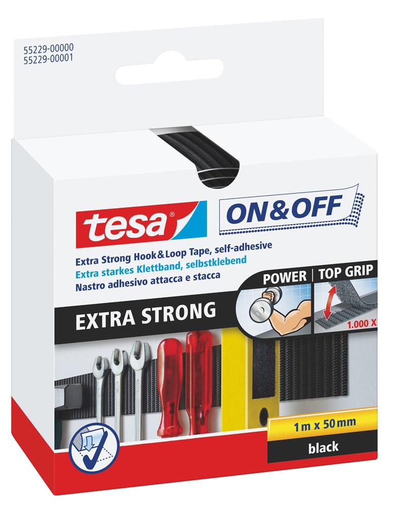 Contacteer onstesa® Artikelnummer: 55229-00000-02 TESA VELCRO EXTRA STERK KLITTENBAND 1MTR X 50MM ZWART