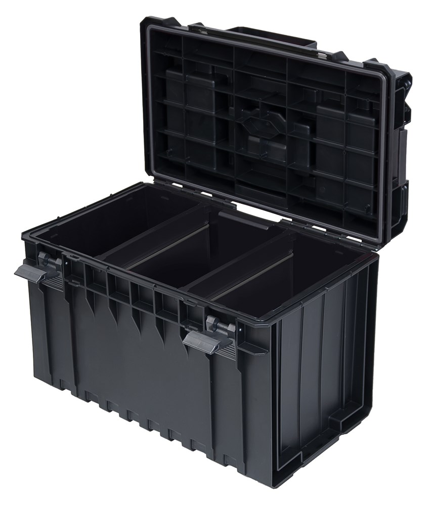 De 450 pro is onderdeel van het modulaire koffersysteem 1. Een sterke koffer van 52 liter, kan tot wel 120 KG dragen, voor maximaal 50 KG aan inhoud. Stof- en waterdicht met sterke hefboomsluiting en voorzien van extra opbergruimte in de deksel.