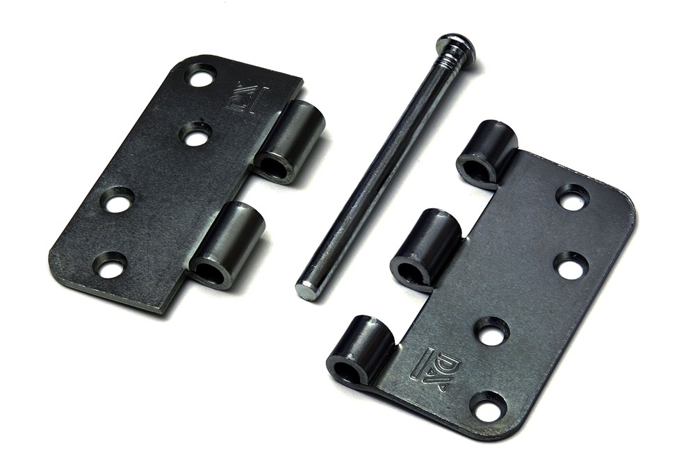 Aan de onderkant is een scharnierknop bevestigd met daarin een gaatje. Allereerst verrijkt de scharnierknop het uiterlijk doordat boven- en onderkant nu identiek ogen. Daarnaast is er met het aangebrachte gaatje voor gezorgd dat demonteren, bijvoorbeeld wanneer u gaat schilderen, eenvoudig blijft. U slaat de bovenste pen door het gaatje gemakkelijk met een spijker omhoog. De scharnierknop en de pen zijn bovendien voorzien van een kartelrand, die voorkomt dat de scharnierknop of de pen na verloop van tijd uit het scharnier kruipt en er tevens voor zorgt dat het scharnier minder gauw scheef gaat hangen.