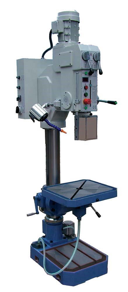 Contacteer onsHeavy-duty tandwielaangedreven kolomboormachine met electromechanische neerwaartse voeding(vloermodel). Ideaal voor het constructieatelier en voor het boren in massief materiaal.Voorzien van een koeloliepomp.