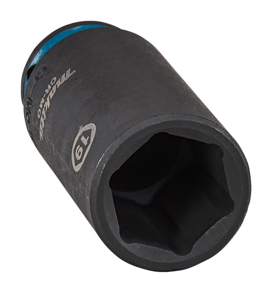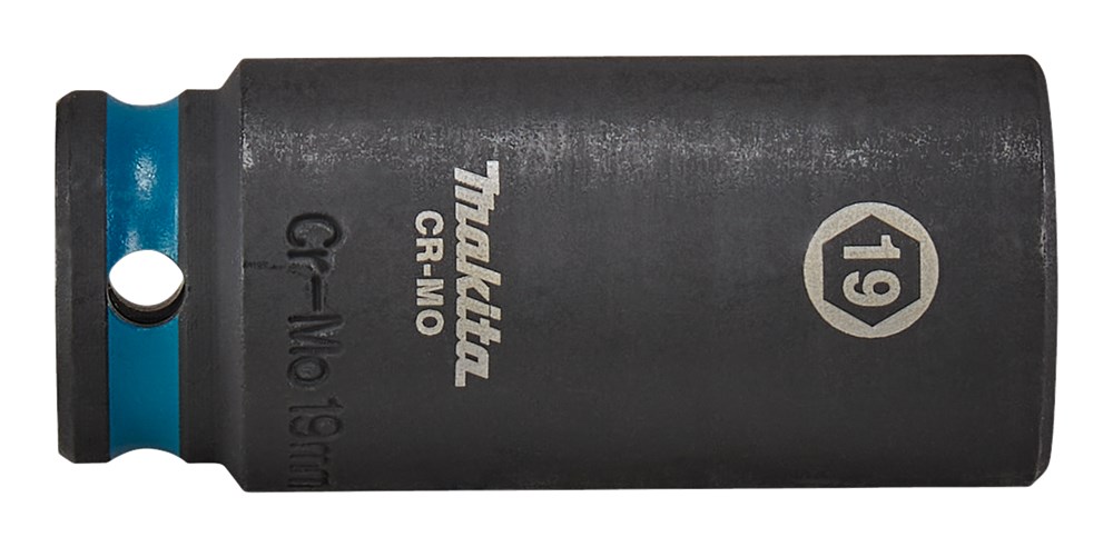 Makita Chroom-Molybdeem krachtdoppen in verschillende diameters en aansluitingen. Losse borgpennen en O-ringen staan in de categorie Borgpennen en O-ringen krachtdoppen. Extra lange Makita 19mm krachtdop uit de Impact Black serie, met 3/8" VK aansluiting met een werklengte van 63mm; perfect voor lastig bereikbare plaatsen. Deze dop is vervaardigd uit Chroom-Molybdeen, heeft een nauwkeurige passing en een lange levensduur. Voorzien van een Makita-teal gekleurde band en maataanduiding.