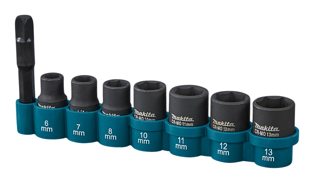 Makita heeft diverse krachtdoppensets in het assortiment. De krachtdoppen zijn gemaakt van CR-MO staal. Door het speciale productieproces wordt een hoge materiaaldichtheid verkregen waardoor de doppen uiterst taai zijn. Hierdoor wordt een lange levensduur en nauwkeurige passing gewaarborgd. Makita heeft zowel lange als korte krachtdoppensets in het assortiment. Al deze krachtdoppen kunnen de kracht weerstaan van slagmoersleutels. De krachtdoppen zijn niet los verkrijgbaar.