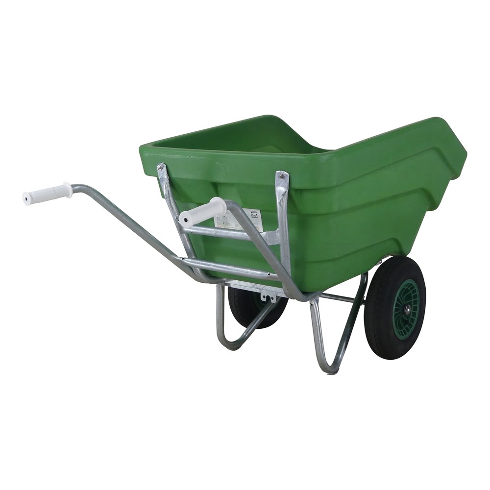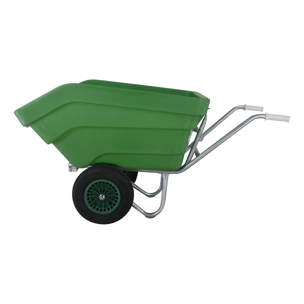 Contacteer onsDe FORT F&S 300/2 KIPP is een Farm & Stable kruiwagen met 2 wielen, voorzien van groene 300 liter kiepbak van hoogwaardige slijt- en slagvast kunststof en een thermisch verzinkt onderstel. De as is gemaakt van vol materiaal staal en daarmee sterker dan uit buis gemaakte assen. Zeer geschikt voor stallen, maneges, grote tuinen en agrarische producten. Deze kruiwagen is optioneel uit te rusten met een dissel, waarmee de kruiwagen als aanhanger aan een zitmaaier gekoppeld kan worden.