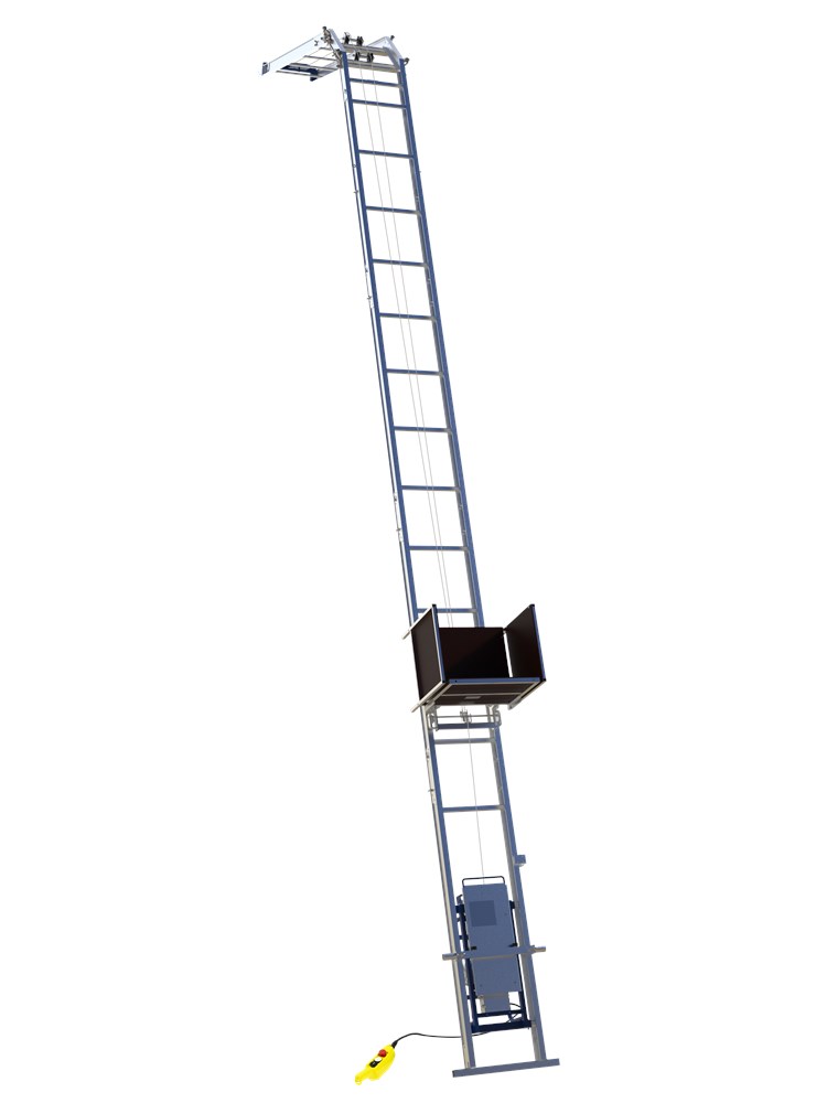 Contacteer onsMultifunctionele traditionele ladderlift met aluminium opbouwframes. Voor het transport van allerlei materialen als dakpannen, stenen en isolatie- en dakmaterialen, maar ook zonnepanelen of andere grote en zware producten. Uit te bouwen tot 22 meter hoogte. Maximale belasting: 150 kg netto