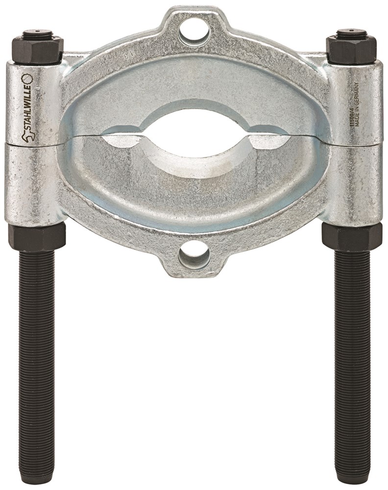 Contacteer onsVerzinkt; passend op nr. 11501 van dezelfde grootte; voor het lostrekken van kogellagers, rollagers, bussen, binnenringen en andere, dicht op elkaar zittende delen; het gelijkmatig aandraaien van de moeren op de zijbouten scheidt de delen; hulptrekker nr. 11501 aanbrengen; lostrekprocedure voortzetten.
