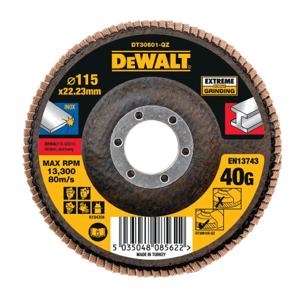 Contacteer onsDeWALT Artikelnummer: DT30601-QZ LAMELLEN SCHUURSCHIJF EXTREME 115X22.2MM 40G