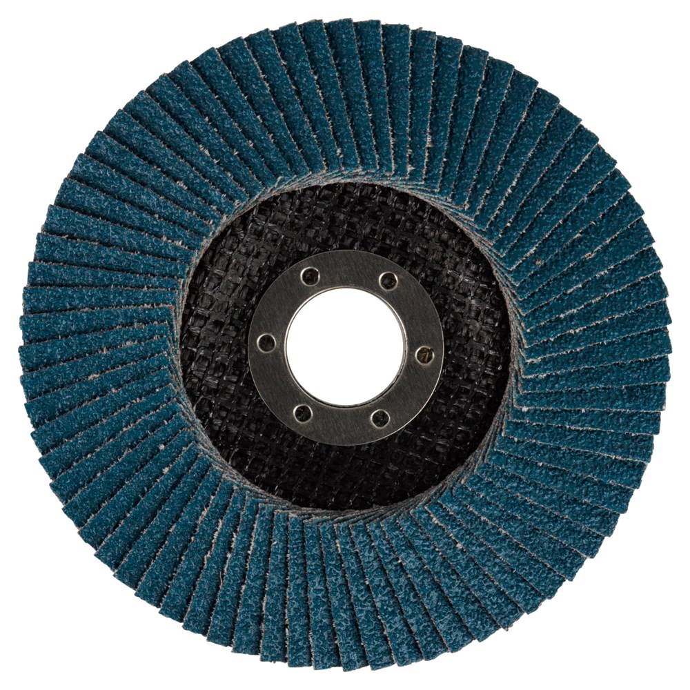 Contacteer onsLamellenschuurschijven zijn voorzien van lamellen bestaande uit een rug van vezelstof en korrels. Deze zijn geplaatst op een schijf met een rug van glasvezels. Doordat de schijf opgebouwd is uit lamellen is deze veerkrachtiger dan een schuurschijf en minder agressief voor het te bewerken materiaal. Bijzonder geschikt voor het schuren van lasnaden. Soorten korrel: Aluminiumoxide [A]: Zeer geschikt voor staal. Geschikt voor aluminium, non-ferro metalen en kunststoffen. Zirkoniumoxide [Z]: Zeer geschikt voor RVS. Geschikt voor staal, aluminium en non-ferro metalen. Keramisch aluminiumoxide [Ce]: Zeer geschikt voor RVS. Geschikt voor staal, aluminium en non-ferro metalen. Siliciumcarbide [S]: Zeer geschikt voor mortel en steen. Vom van de schijf: Vlakke schijven gebruik je voor het vlakschuren van oppervlakken. Plaatst deze onder een hoek van 0-15° op het materiaal voor een optimaal gebruik. Schuine schijven gebruik je voor het schuren van lasnaden, slijpen van vellingkanten en ontbramen. Plaats deze onder een hoek van 10-25° op het materiaal voor een optimaal gebruik. Korrels: 36/40: Lasnaadbewerking en vellingkanten. 60: Lasnaadbewerking, vellingkanten, ontbramen en vlakschuren. 80: Ontbramen en vlakschuren. 120: Vlakschuren. Makita zirkonium-aluminiumoxide lamellenschuurschijf schuin met glasvezel versterkte rug. Diameter 125mm met korrel 40. Zeer geschikt voor: metaal. Geschikt voor: RVS en non-ferro metalen. Voor intensiever gebruik raden wij lamellenschijf B-22660 aan.