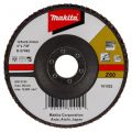 Contacteer onsLamellenschuurschijven zijn voorzien van lamellen bestaande uit een rug van vezelstof en korrels. Deze zijn geplaatst op een schijf met een rug van glasvezels. Doordat de schijf opgebouwd is uit lamellen is deze veerkrachtiger dan een schuurschijf en minder agressief voor het te bewerken materiaal. Bijzonder geschikt voor het schuren van lasnaden. Soorten korrel: Aluminiumoxide [A]: Zeer geschikt voor staal. Geschikt voor aluminium, non-ferro metalen en kunststoffen. Zirkoniumoxide [Z]: Zeer geschikt voor RVS. Geschikt voor staal, aluminium en non-ferro metalen. Keramisch aluminiumoxide [Ce]: Zeer geschikt voor RVS. Geschikt voor staal, aluminium en non-ferro metalen. Siliciumcarbide [S]: Zeer geschikt voor mortel en steen. Vom van de schijf: Vlakke schijven gebruik je voor het vlakschuren van oppervlakken. Plaatst deze onder een hoek van 0-15° op het materiaal voor een optimaal gebruik. Schuine schijven gebruik je voor het schuren van lasnaden, slijpen van vellingkanten en ontbramen. Plaats deze onder een hoek van 10-25° op het materiaal voor een optimaal gebruik. Korrels: 36/40: Lasnaadbewerking en vellingkanten. 60: Lasnaadbewerking, vellingkanten, ontbramen en vlakschuren. 80: Ontbramen en vlakschuren. 120: Vlakschuren. Makita zirkonium-aluminiumoxide lamellenschuurschijf schuin met glasvezel versterkte rug. Diameter 125mm met korrel 60. Zeer geschikt voor: metaal. Geschikt voor: RVS en non-ferro metalen. Voor intensiever gebruik raden wij lamellenschijf B-22676 aan.