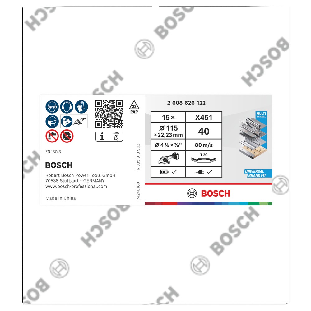 Contacteer onsBosch Artikelnummer: 2608626122 LAMELSCHIJF X451 MULTI 115MM K40 SCHUIN