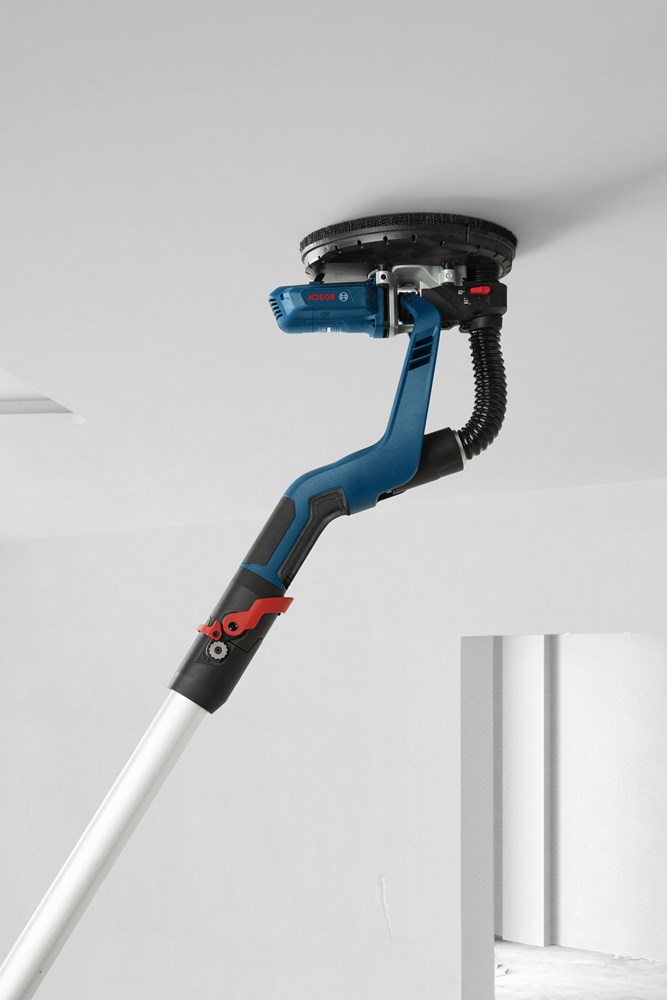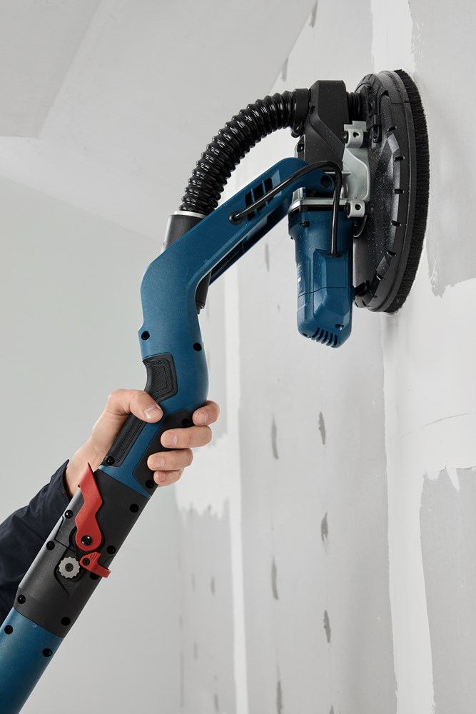 Ontworpen om gipsplaatbouwers efficiënter te maken is de GTR 55-225 Professional de betrouwbare partner voor binnenafwerkers die grote klussen aanpakken. Deze langnekschuurmachine beschikt over een gepatenteerde „Ultra-Flexible Head” (ultraflexibele kop) waarmee moeiteloos over muren en plafonds kan worden bewogen en er minder risico op beschadiging van het oppervlak bestaat. De geïntegreerde plafondzuigfunctie beperkt vermoeidheid tijdens langdurig gebruik tot een minimum, omdat het waargenomen gewicht van de machine aanzienlijk wordt verminderd door de zuigkracht die vanuit een aangesloten stofzuiger wordt geproduceerd. Ook inbegrepen bij de GTR 55-225 is een ergonomische L-vormige extra handgreep die zorgt voor maximaal comfort en verder vermoeidheid vermindert tijdens het schuren in lastige houdingen.