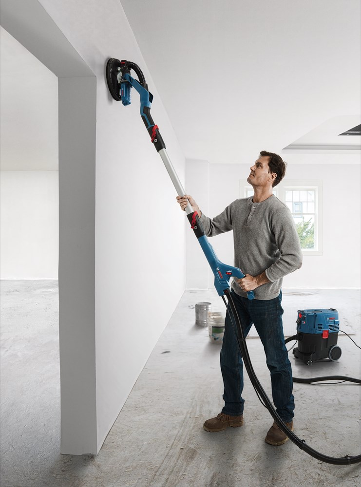 Voor gipsplaatbouwers, stukadoors, schilders en binnenafwerkers die veel wanden en plafonds moeten schuren of oppervlakken moeten voorbereiden.