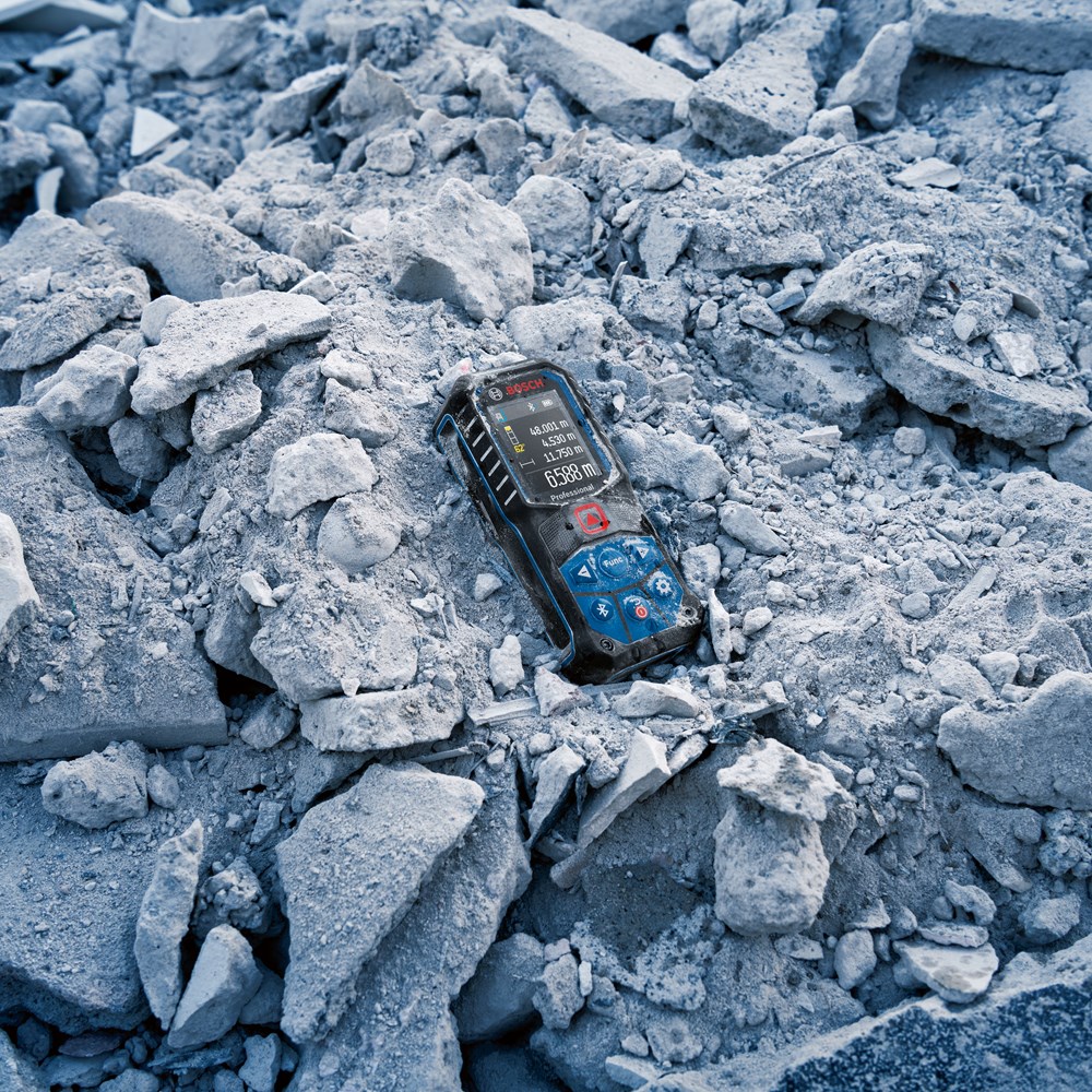 De laserafstandsmeter GLM 50-27 C Professional biedt een zeer duurzaam ontwerp dat bestand is tegen ruwe omstandigheden, terwijl deze snel documenteren en gebruiksgemak mogelijk maakt. Perfect voor veeleisende bouwplaatsen beschikt het ontwerp met beschermklasse IP 65 over een schokabsorberende behuizing en is bestand tegen een val vanaf een hoogte van 1,5 meter, zelfs op hard beton. Dankzij de snelle gegevensoverdracht via Bluetooth®-connectiviteit en de Bosch MeasureOn-app was het documenteren van meetresultaten nog nooit zo eenvoudig. Intuïtief bedienen wordt gewaarborgd door de slimme gebruikersinterface met veel handige functies zoals een kleurendisplay van hoge kwaliteit en een praktische helpfunctie.