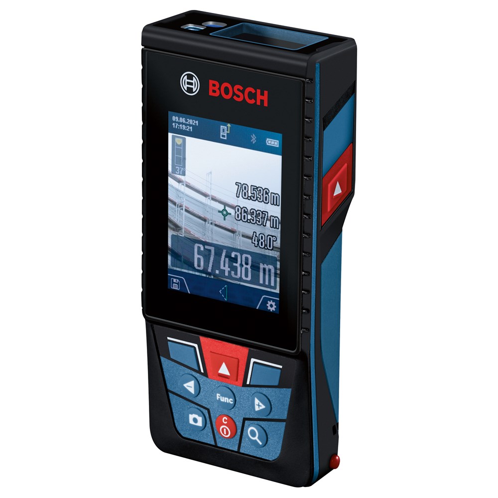 Deze robuuste laserafstandsmeter voor buiten heeft een digitale camerazoeker met een zoomfunctie om afstanden tot max. 150 m nauwkeurig te meten. Metingen en foto's worden automatisch opgeslagen en zijn gemakkelijk af te lezen dankzij een groot, contrastrijk 2,8" IPS-kleurendisplay dat kan draaien van een staand naar liggend aanzicht. Voor comfortabel documenteren kunnen alle gegevens via Bluetooth naar de Bosch MeasureOn-app of via een USB-verbinding naar een pc worden overgebracht. Met IP54-beschermklasse, krasvast displayglas en gebruikersvriendelijke interface is deze laserafstandsmeter de praktische allrounder voor veeleisende bouwplaatsen.