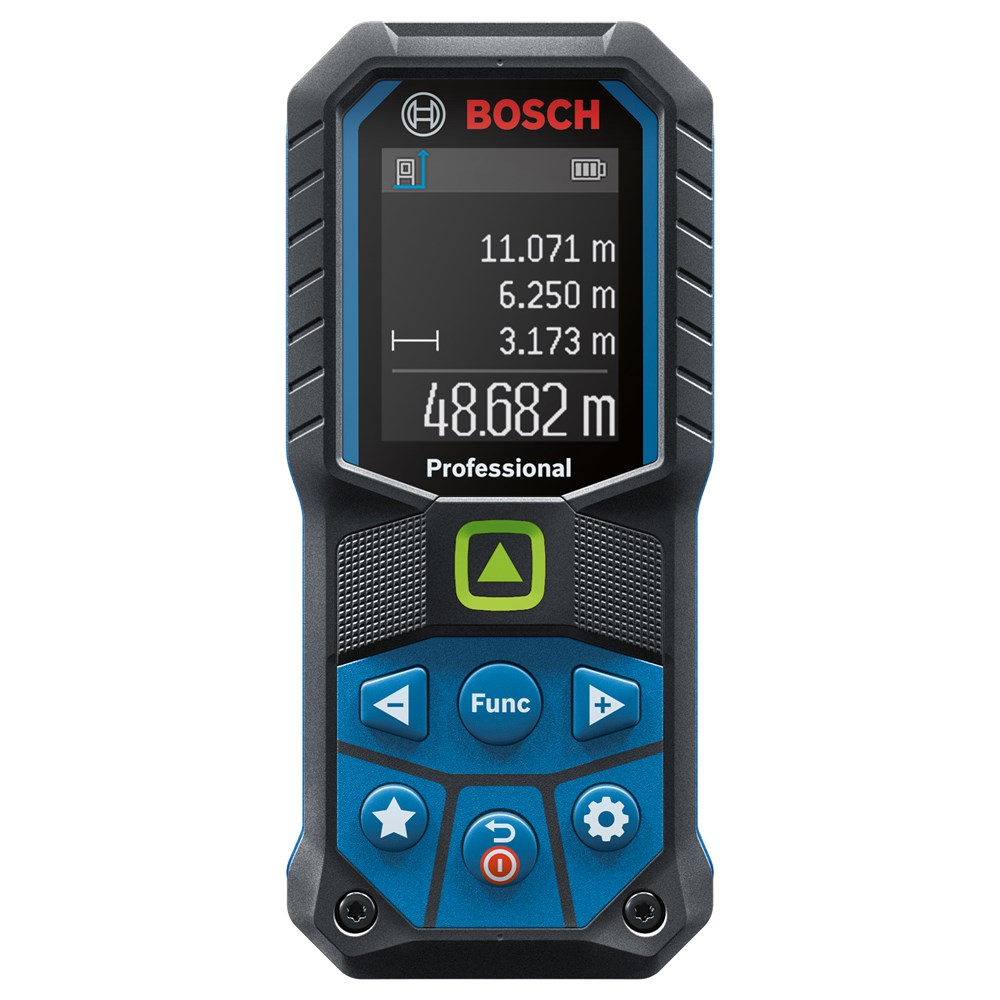 De GLM 50-25 G Professional biedt fantastische zichtbaarheid van de groene laserpunt voor beter richten bij het meten over lange afstanden binnen. Met het IP65-ontwerp is het toestel compleet beschermd tegen stofdeeltjes en waterstralen, terwijl de schokabsorberende behuizing ervoor zorgt dat het bestand is tegen een val vanaf 1,5 m, zelfs op hard beton. Het toestel beschikt over een aanpasbare knop om favoriete meetfuncties of instellingen vast te leggen, en bevestigt met trillingen de metingen. De intuïtieve gebruikersinterface ondersteunt 30 talen en bestaat uit een kleurendisplay met grote cijfers voor een betere leesbaarheid.