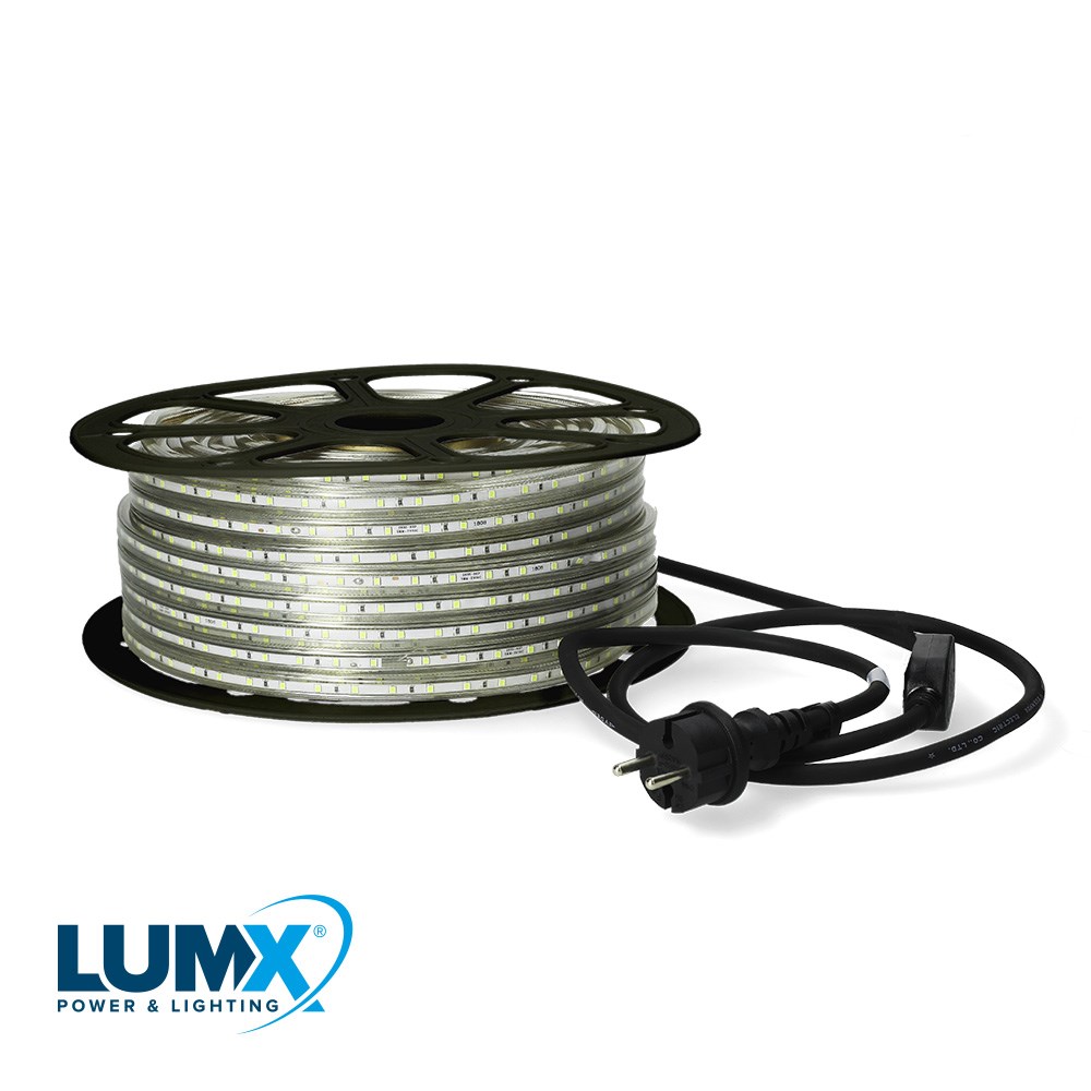 Contacteer onsLUMX Rope LED – 50 meter pure power in één rol Zoek je een krachtige en duurzame lichtoplossing voor binnen én buiten? De LUMX Rope LED is jouw betrouwbare partner op elke werf. Met z’n 60 groene leds per meter en een lichtopbrengst van 400 lumen per meter breng je elke ruimte of gevel moeiteloos tot leven – of het nu gaat om sfeervolle accenten of functionele verlichting. Waarom kiezen professionals voor deze LED-rol? * Plug & Play: geleverd met een zwarte EU-stroomkabel (H07RN-F 2x1.5mm²) en een AC/DC-transformator met connector – dus direct klaar voor gebruik. * Waterdicht & robuust: dankzij IP65-bescherming trotseer je weer en wind zonder zorgen. * Topafwerking: op elke meter staat het LUMX-logo – professioneel, herkenbaar en betrouwbaar. * Gecertificeerd & veilig: met geldige CE-keuring, CE-markering en een overzichtelijke gebruikshandleiding in 4 talen ben je helemaal in orde op vlak van regelgeving. Deze 50-meterrol is ideaal voor aannemers, installateurs en evenementenbouwers die snel, veilig en stijlvol willen verlichten. LUMX – Licht dat blijft presteren.
